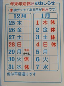 年末年始のお知らせ